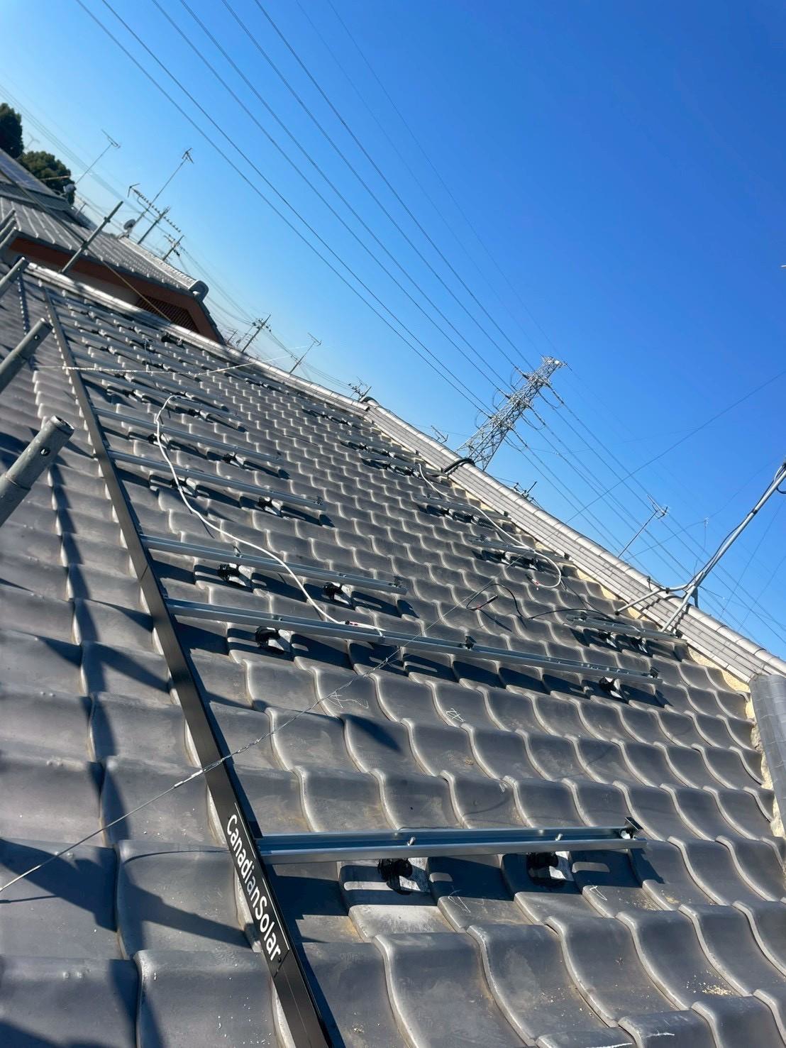 埼玉県の一戸建てご住宅に、太陽光発電システムと蓄電池を設置いたしました。 太陽光パネルはカナディアンソーラー5.0kW、蓄電池はEPCUBE9.8kWh(全負荷対応)を採用しています。 和瓦屋根という施工条件の中、AIKO、カナディアン、長州の複数メーカーで割付比較を実施し、現地実測を経てお客様に最適なシステムをご提案いたしました。 東西面の三角屋根は設置条件により見送り、南面を中心に効率的な配置を実現しています。 施工では2面足場を設置し、予備瓦の準備や竪樋交換などの付帯工事にも対応いたしました。 また、適用可能な補助金申請サポートも実施することで、お客様のご要望に寄り添った丁寧な対応を心がけてご提案させていただきました。